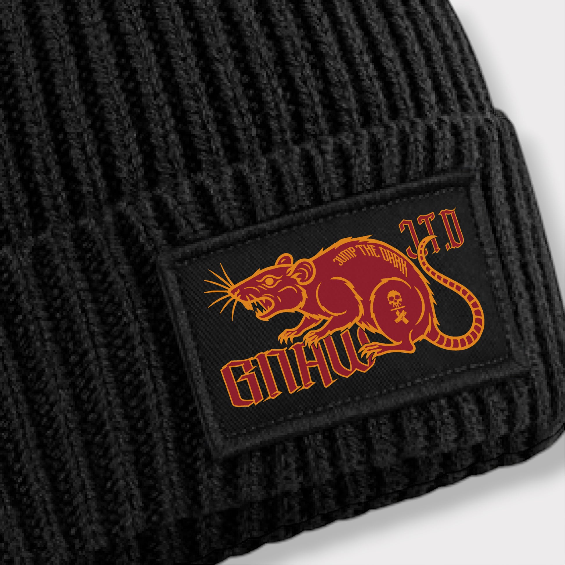 Embrace urban grit and street-ready style with the Gnaw Beanie from Jump The Dark, featuring the iconic London rat motif as a symbol of resilience and toughness. Designed for Autumn/Winter 2025, this beanie combines sustainable materials, premium comfort, and bold design for a standout seasonal accessory.